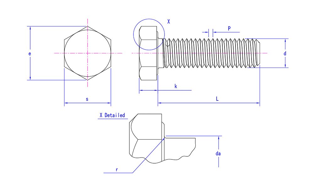 | Tangon ominaisuudet | Vakio kuusikulmainen pää |
