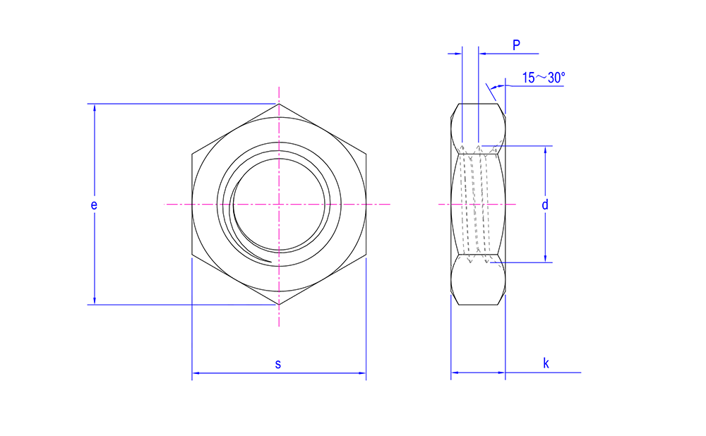 | Ulkonäkö Ominaisuudet | Muoto: Kuusikulmainen, kuusi symmetristä sivua, mikä mahdollistaa helpon kiristämisen ja irrottamisen jakoavaimella tai muilla työkaluilla. Tämä muotoilu tarjoaa paremman käyttömukavuuden ahtaissa tiloissa. Paksuus: Tavallisiin kuusiomuttereihin verrattuna se on ohuempi, luokiteltu ohueksi mutteriksi. Se on suhteellisen kevyt ja vie vähemmän tilaa. Pintakäsittely: Säilyttää tyypillisesti ruostumattoman teräksen luonnollisen värin ja metallisen kiillon. Se voidaan myös passivoida, kiillottaa tai muut pintakäsittelyt tarpeen mukaan parantaa korroosionkestävyyttä ja estetiikkaa. |