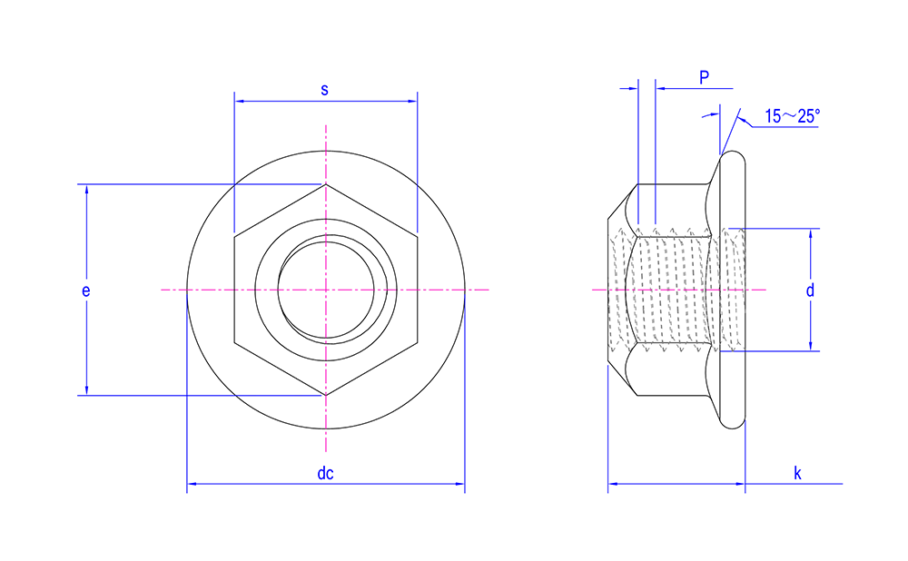 | Edut ja ominaisuudet | Sisäinen metallikierre, jonka ulkopuolelle on lisätty ei-metallinen laippa lukitus- ja vakaustoimintojen aikaansaamiseksi Käytetään lukitus- ja vakautustoimintoja vaativien liitosten kiinnittämiseen |