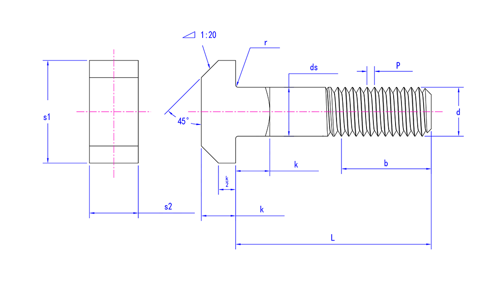 | Valinnan keskeiset indikaattorit | T-pään muoto, neliömäinen kaulan koko, pultin pituus, halkaisija, kierteen pituus, materiaali. |