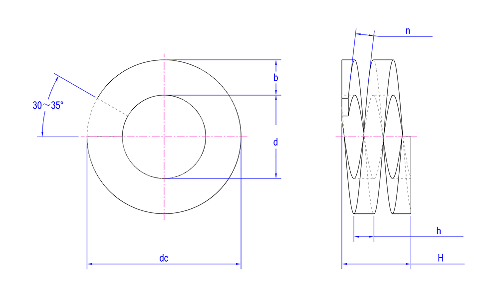 | Tangon ominaisuudet | Sisäpuolella on vakiokierteet, jotka on suunniteltu antamaan jousipaine, parantaen lukitus- ja tärinänkestotoimintoja. |